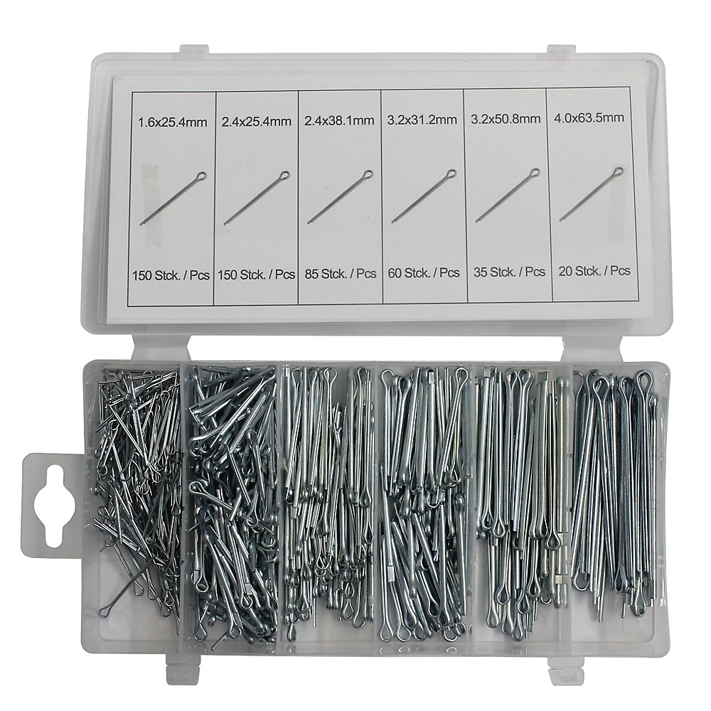 Content: Ø x length 1.6 x 25.4 mm – 150 pieces 2.4 x 25.4 mm – 150 pieces 2.4 x 38.1 mm – 85 pieces 3.2 x 31.2 mm – 60 pieces 3.2 x 50.8 mm – 35 pieces 4.0 x 63.5 mm – 20 pieces