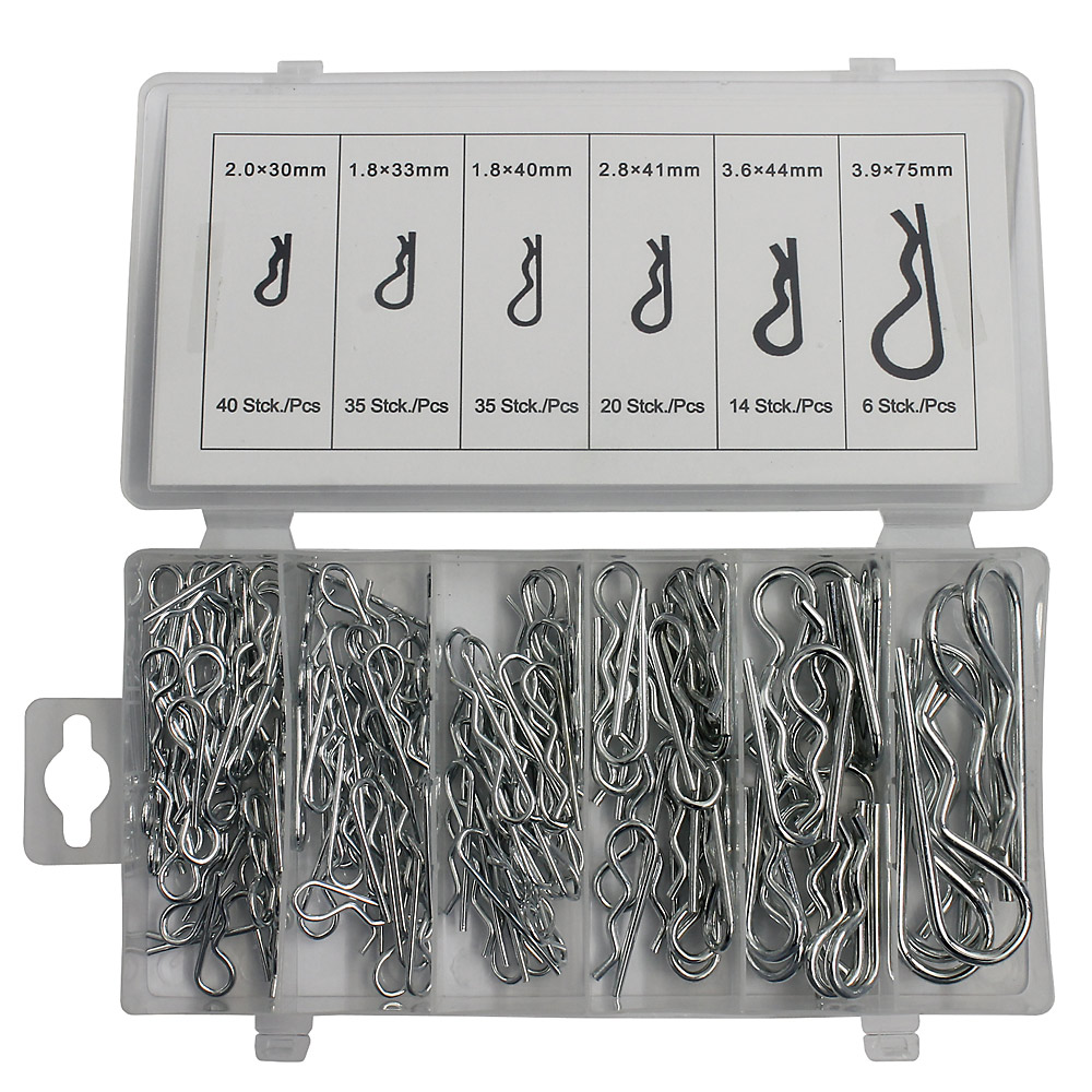 Contents: Ø x length 1.8 x 33 mm – 35 pieces 1.8 x 40 mm – 35 pieces 2.0 x 30 mm – 40 pieces 2.8 x 41 mm – 20 pieces 3.6 x 44 mm – 14 pieces 3.9 x 75 mm – 6 pieces